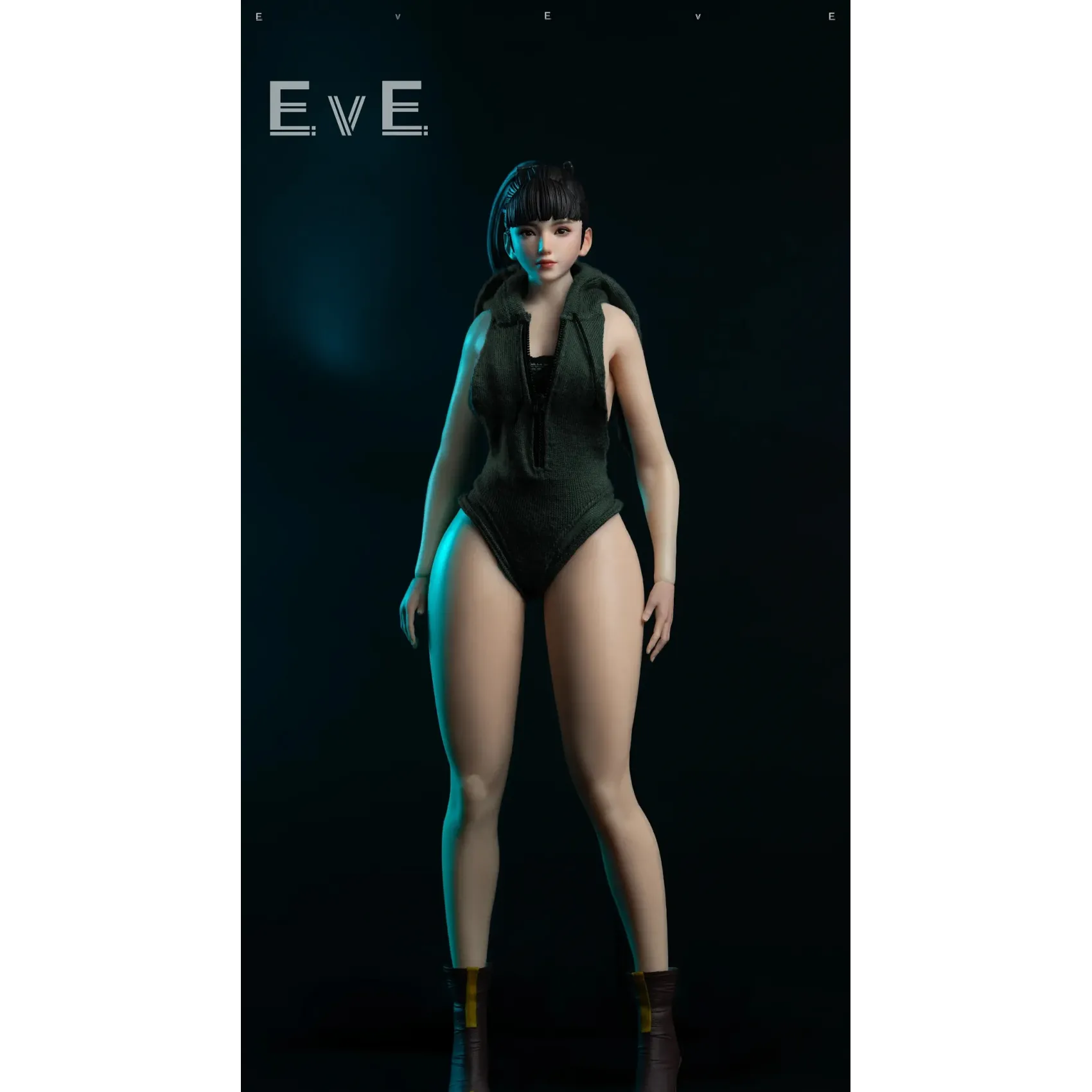 Version B: 1 articulated female head sculpt; 1 brand new custom-made full-hipped steel-boned female body; 1 holiday bunny set; 1 metal hair tie; 1 pair of high-heeled boots; 4 pairs of interchangeable hands
